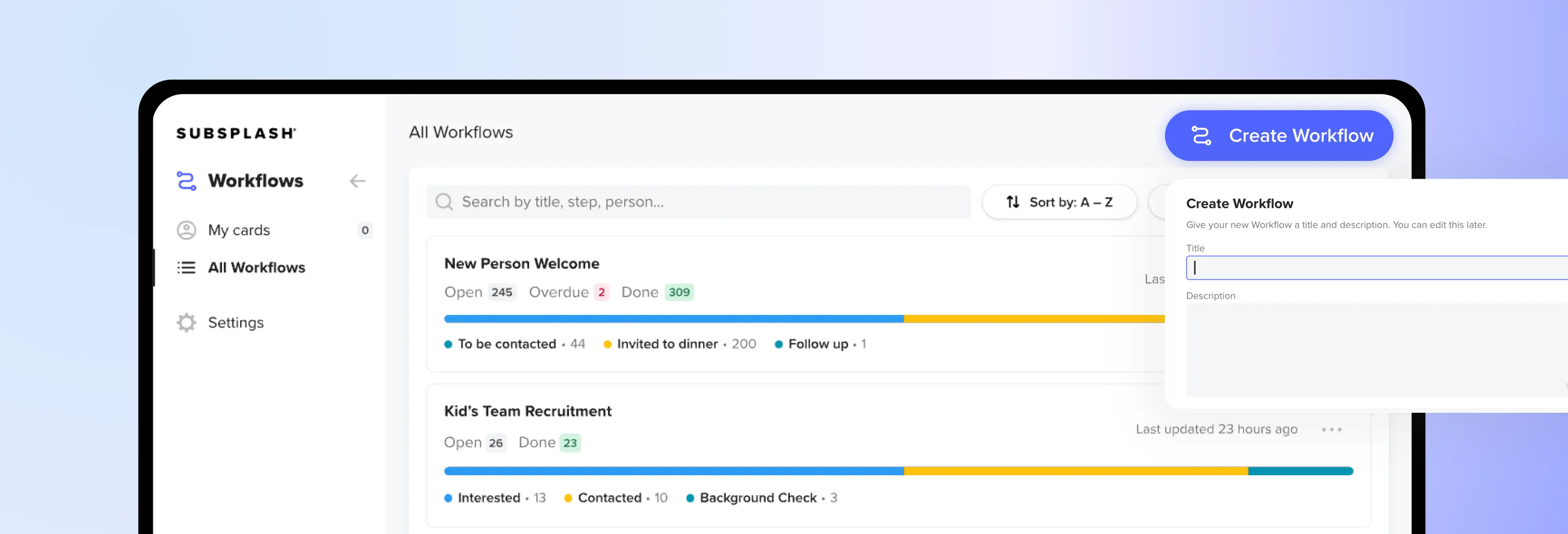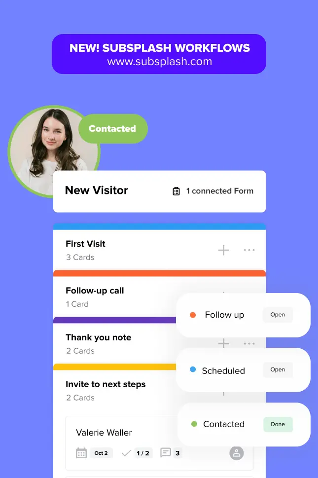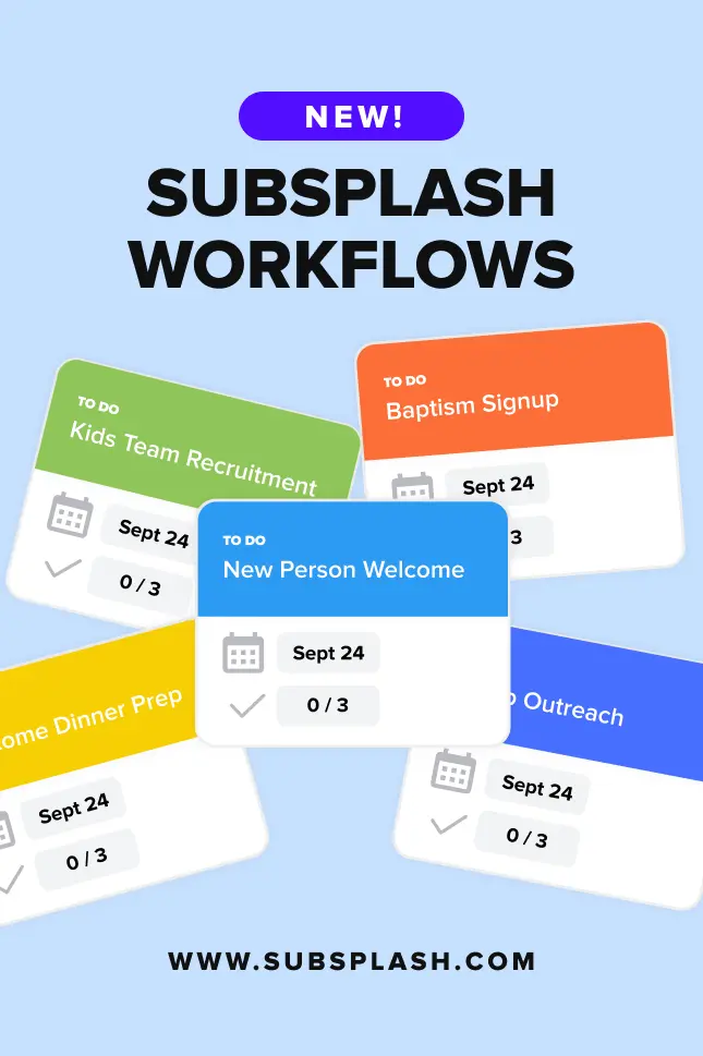 That’s why we built Subsplash Workflows—our newest tool to simplify church administration and help your team stay focused on what matters most: people.