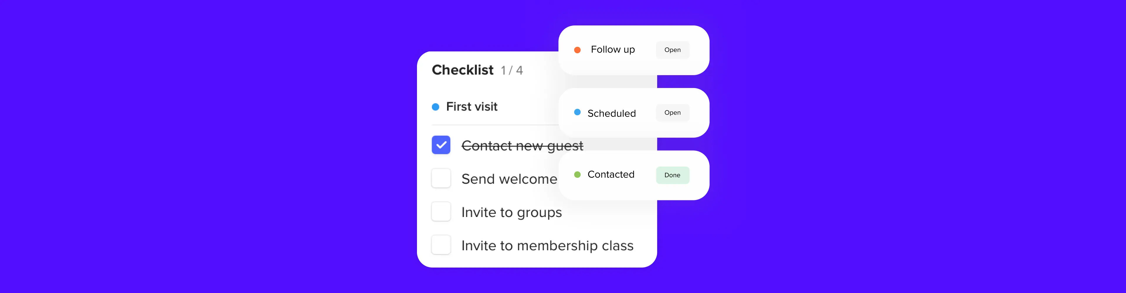 Workflows turns complicated, multi-step processes into simple, visual, and trackable plans. No more stacks of connect cards waiting to be processed. No more forgotten follow-ups or missing volunteer steps. Everything—and everyone—stays connected.