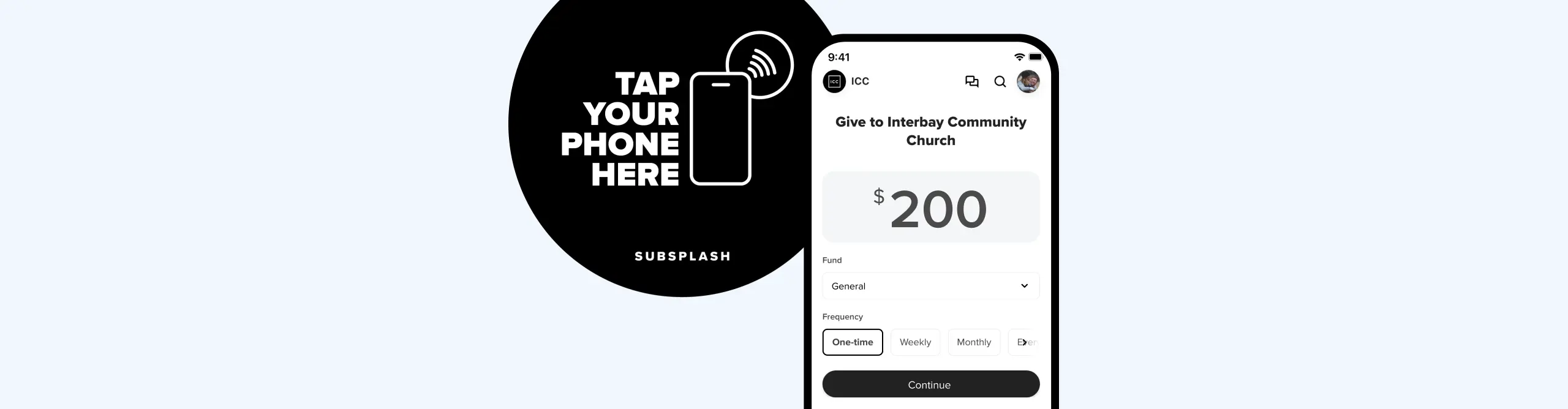 Using the same convenient tech used for contactless payments, Subsplash Tap allows donors to make a gift to your church through a simple tap with their phone. That means church giving has finally caught up with the convenience of everyday payment processors people already use and trust!