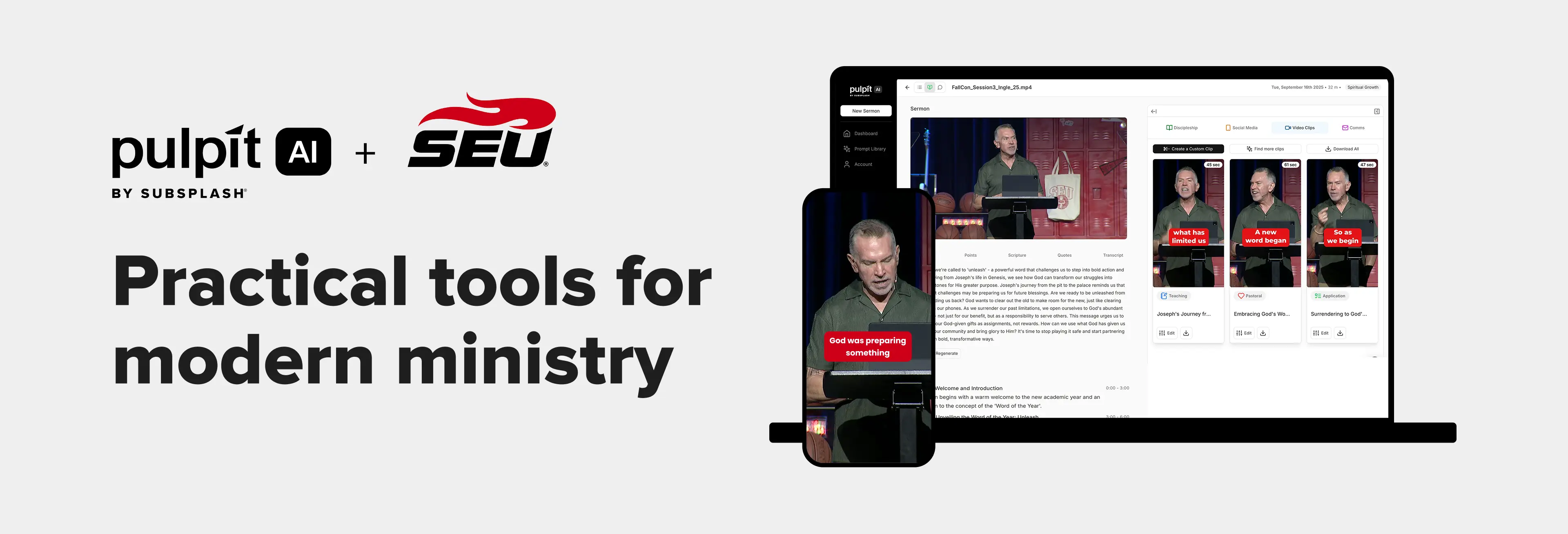 Subsplash is incredibly excited to partner with SEU. The mission with Pulpit AI is to empower pastors to effectively communicate the gospel, and by providing students access to this technology, Subsplash is investing in the next generation of church leaders.
