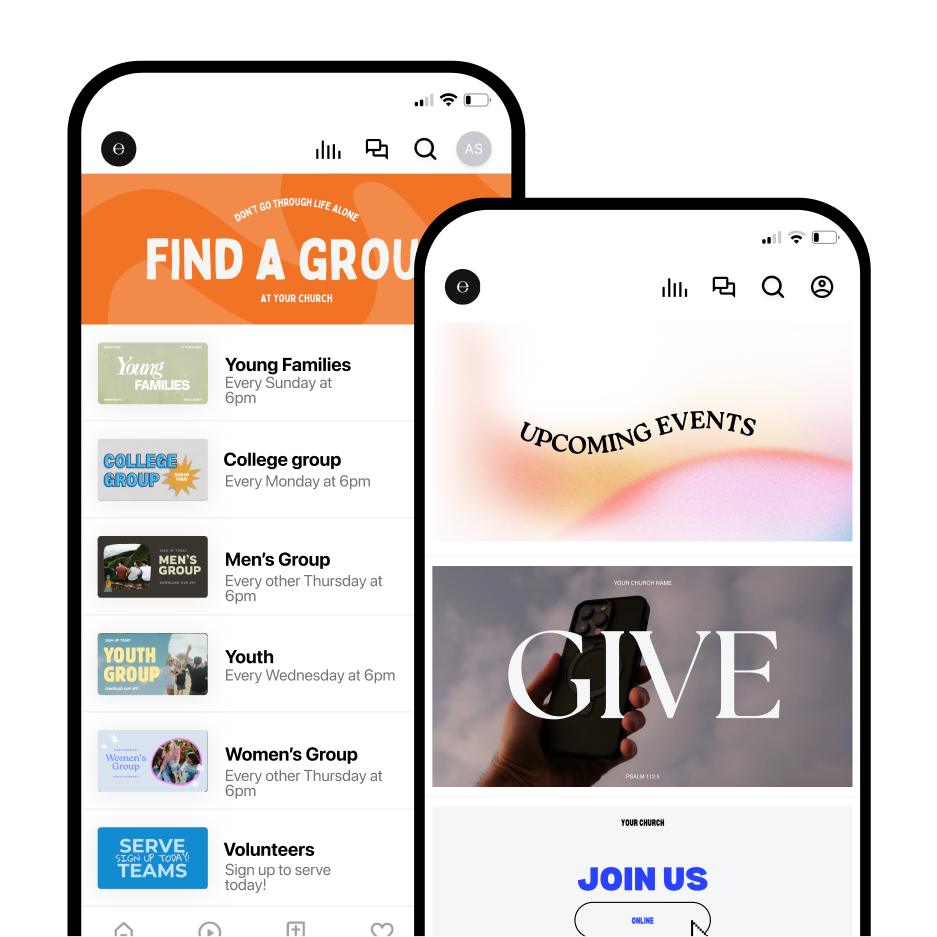 Launch a custom mobile app that lives in every major app store, plus TV apps for Apple TV and Roku. Share sermons, send push notifications, engage through messaging, and make giving easy in one branded experience.