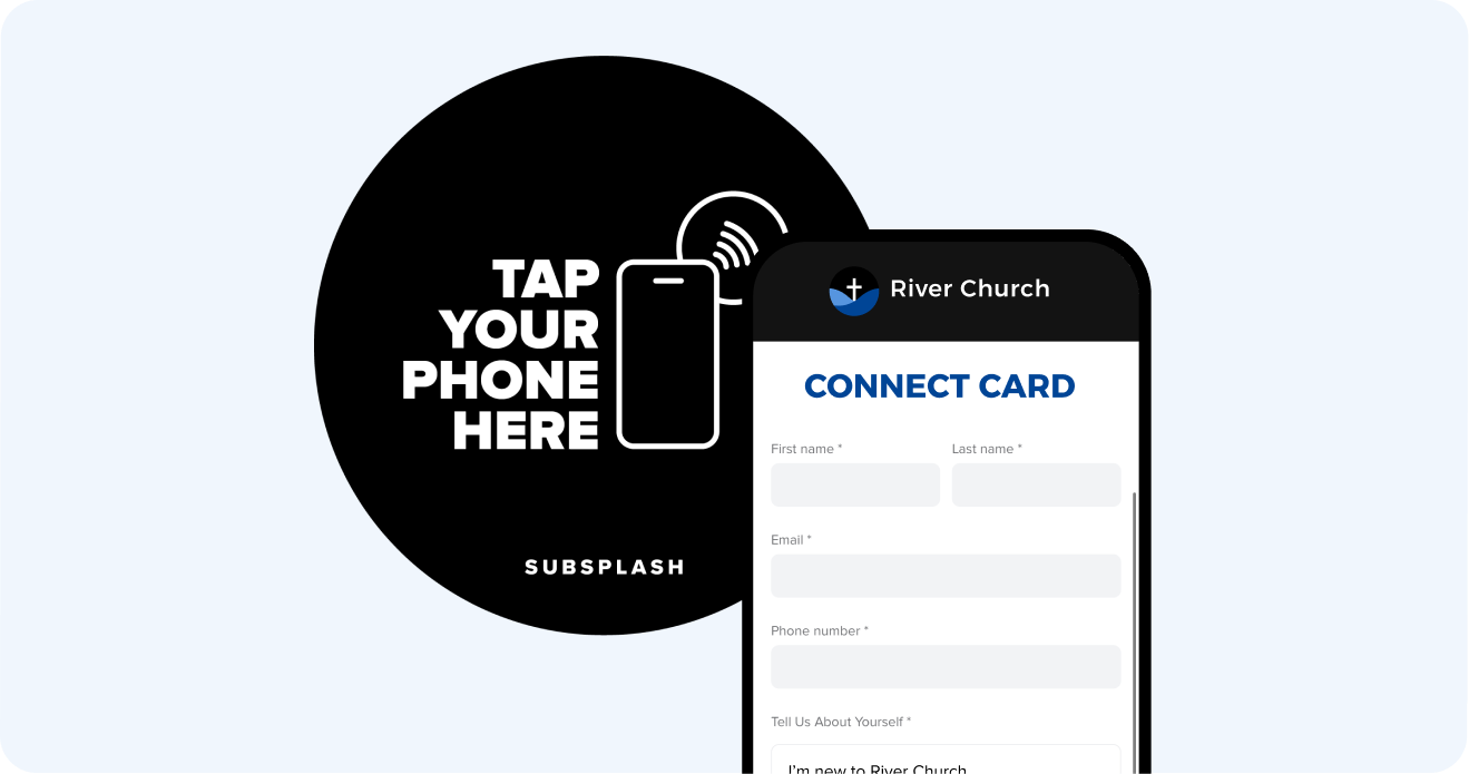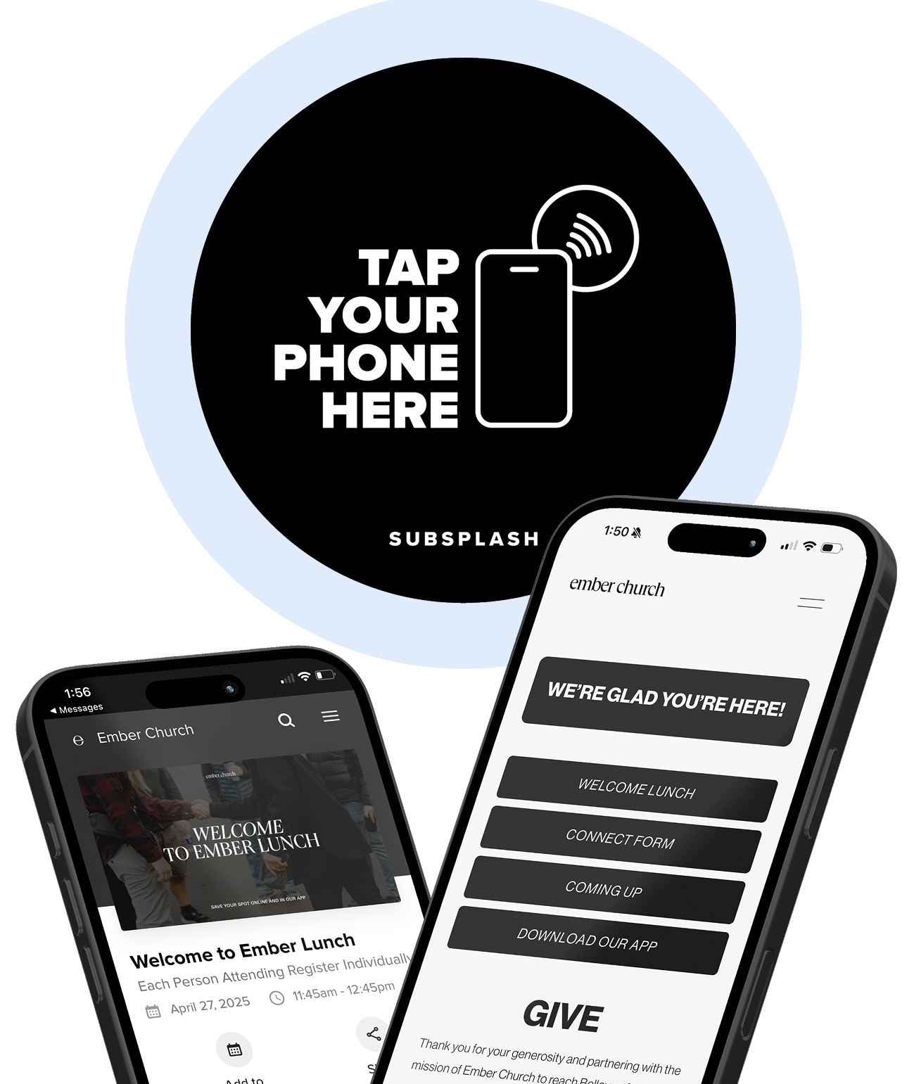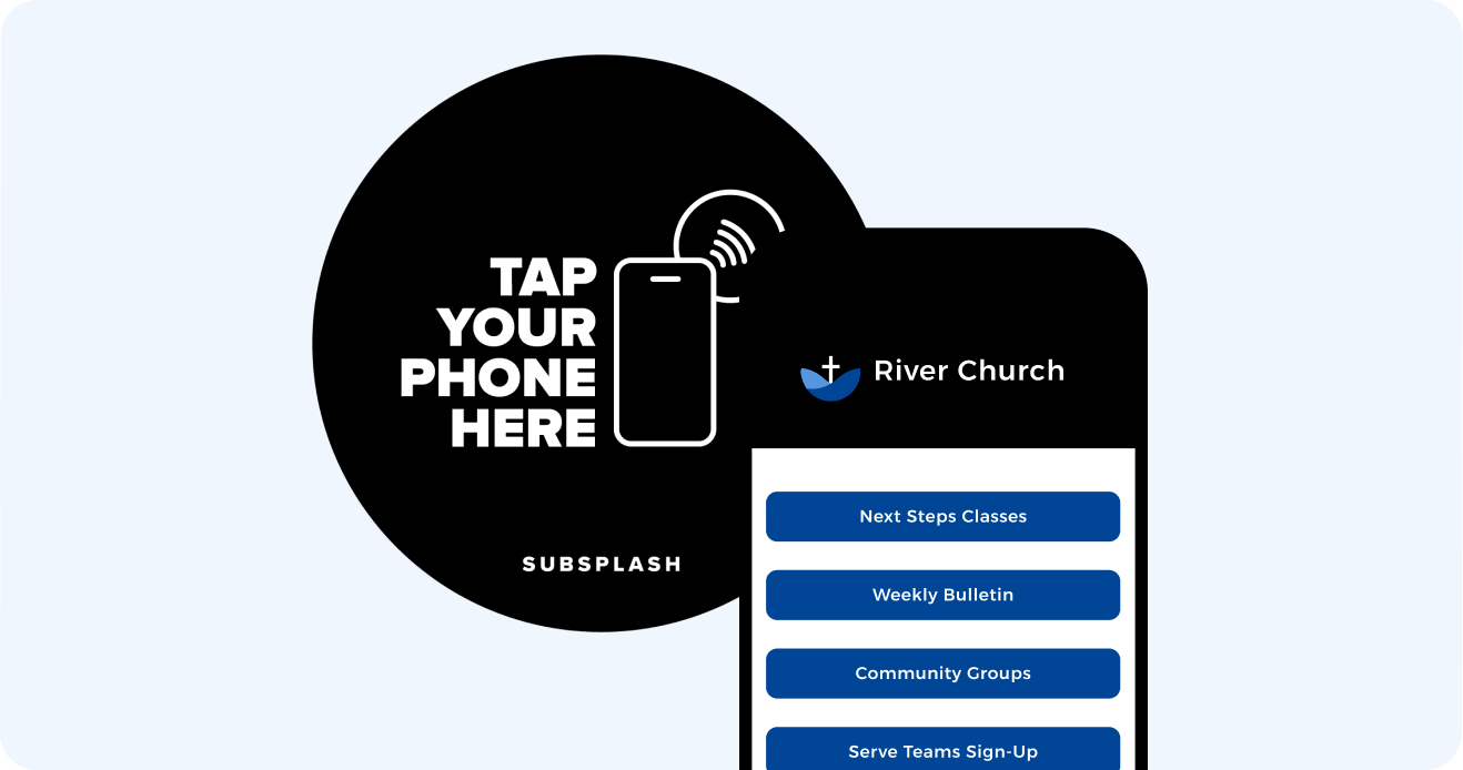 Subsplash Tap uses built-in NFC technology in discs and stands to instantly connect your community to whatever matters most—without scanning, typing, or downloading anything.
