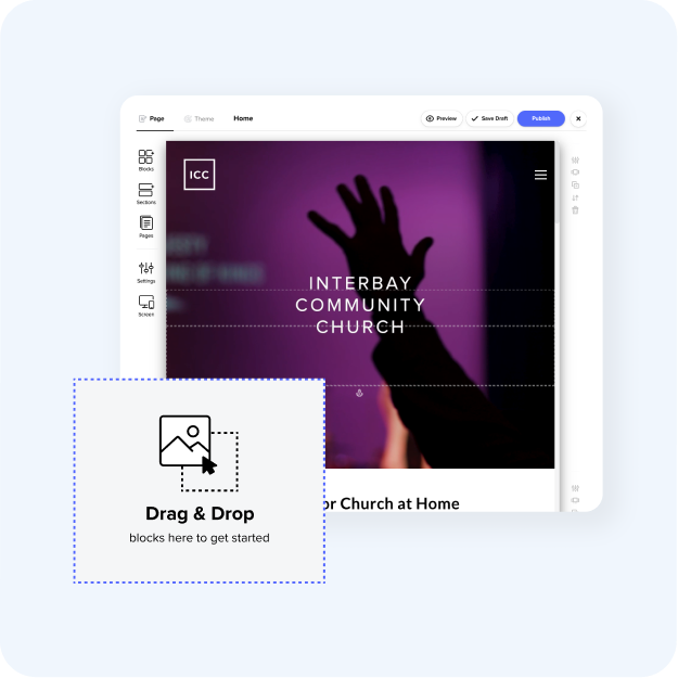 Build a website that grows with your ministry. Start with modern church templates and customize them effortlessly with drag-and-drop tools.