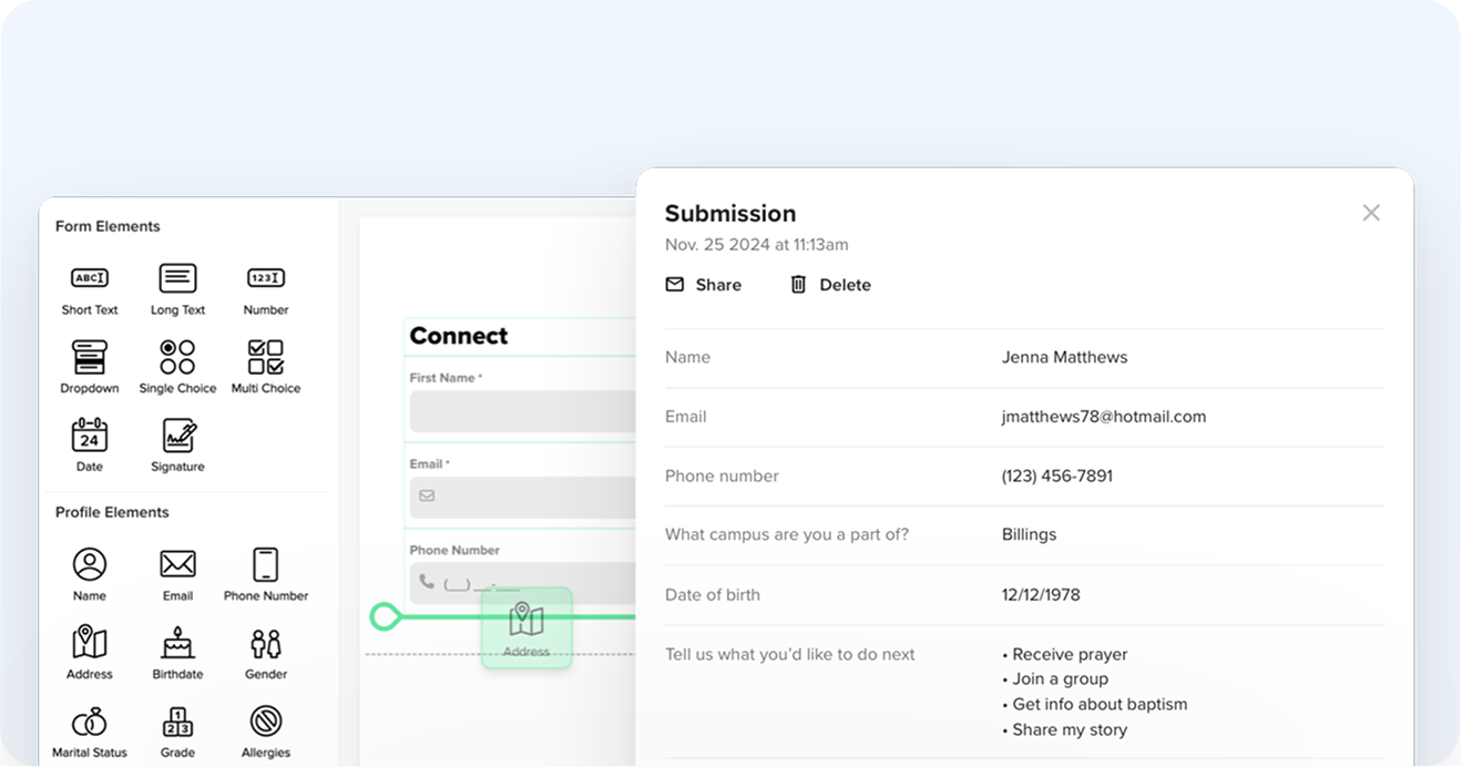 Instantly open links to give, sign up, submit a prayer request, or fill out a connect card. QR codes and NFC cards remove steps, so more people take action in the moment.