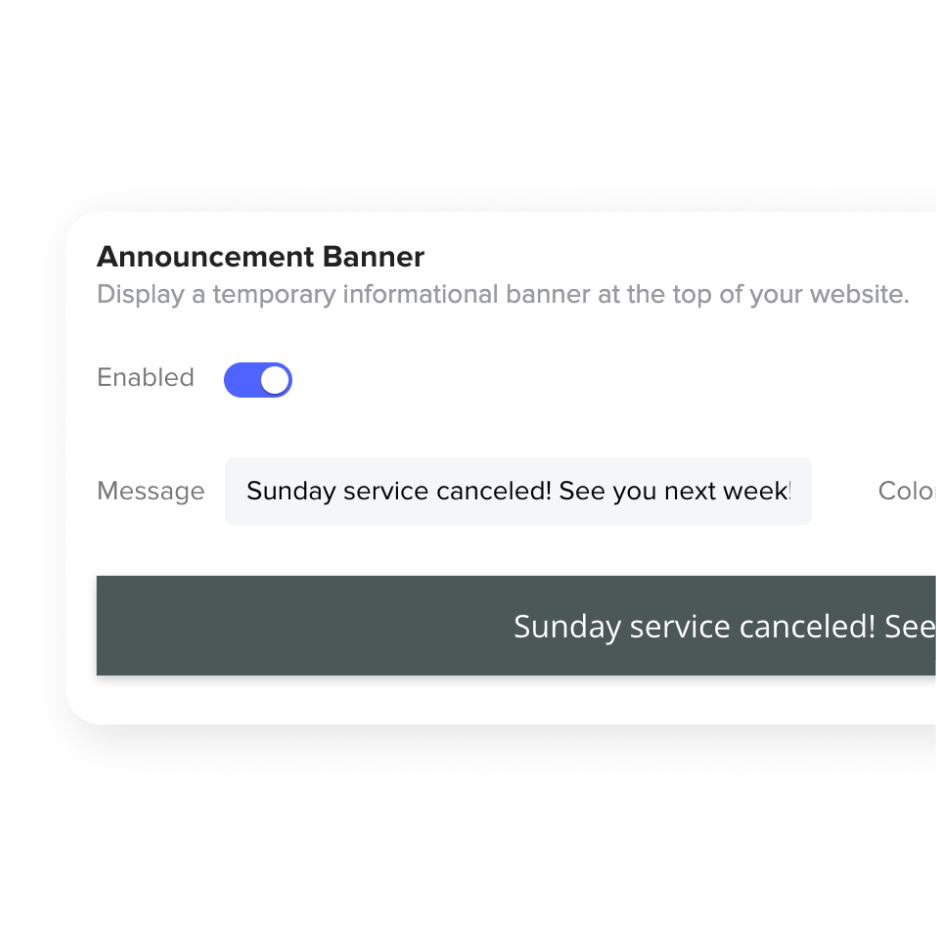 Turn your website into a tool for generosity. With embedded giving and recurring options, it’s easy for your church to support what matters most.